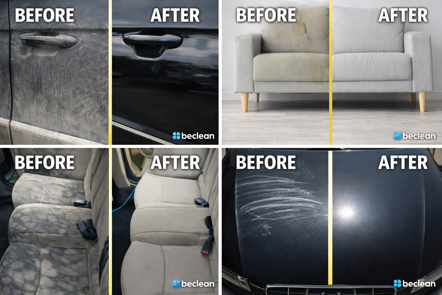 Bij Beclean begrijpen we het belang van een professionele uitstraling naar uw klanten en personeel. Ons toegewijde team streeft ernaar uw verwachtingen op het vlak van netheid en hygiëne te overtreffen. Ontdek onze expertise via deze boeiende video, die onze knowhow in het reinigen van auto's, fauteuils, kantoortapijten en bioscoopzetels belicht.