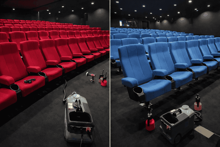Beclean intervient pour le nettoyage professionnel de sièges de cinéma avec matériel adapté aux grandes surfaces.